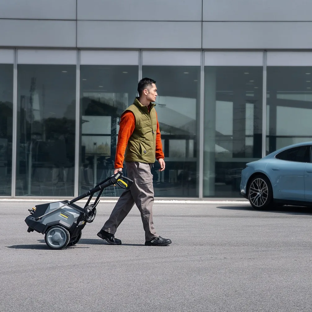 Designed for convenience, the HD 5/13 Classic features large rugged wheels, a high-quality castor with parking brake, and an ergonomic handle for easy movement during frequent changes of location.