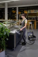 The SG 4/2 Classic features a space-saving box design with built-in accessory storage. This makes it easy to carry, transport, and store — ideal for commercial cleaners and professionals on the go.